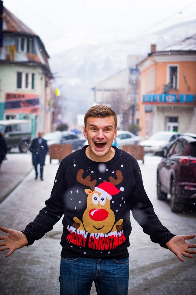 Christmas sweater: Para começar, vamos falar sobre uma vestimenta típica dessa época do ano: os suéteres natalinos. Muito famosos nos EUA e no Reino Unido, eles são bem quentinhos e levam estampas de elementos relacionados ao Natal, como renas, pinheiros, bonecos de neve, Papai Noel, etc…